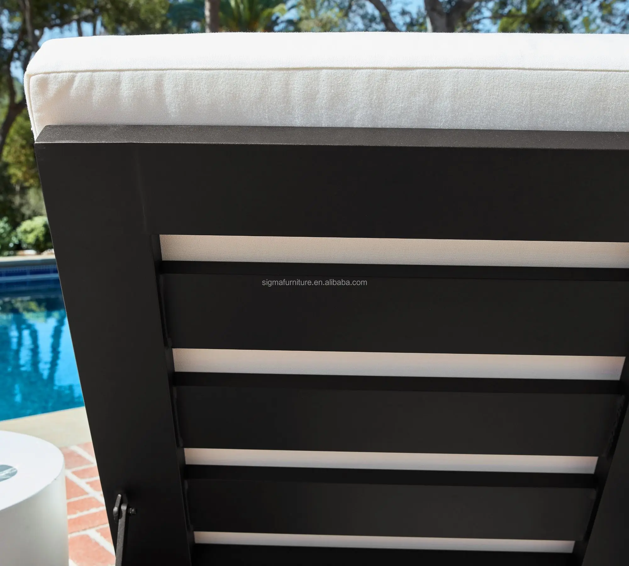 Outdoor garden aluminum folding webbed lawn chair chaise lounge back has 4 adjustable heights