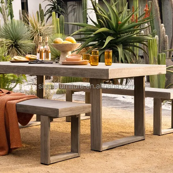 Outdoor wholesale park beach teak wood patio picnic dining table and chairs set with dining bench