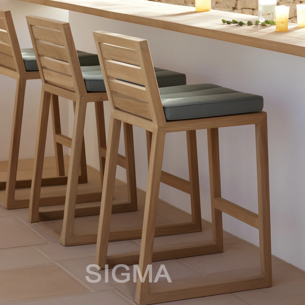 Outside use teak dining chair natural solid teak wood dining chair from indonesia waterproof fabric