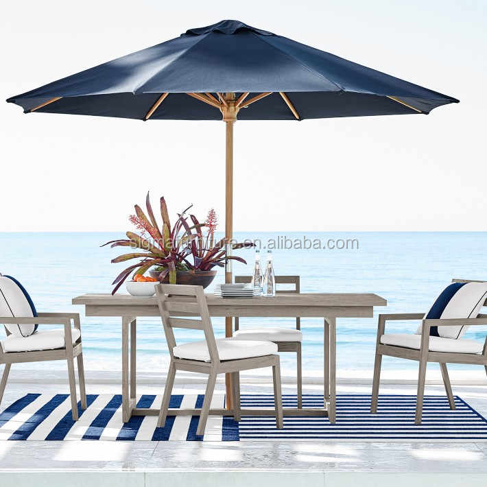patio furniture hotel pared-down aesthetic outdoor premium teak wood frame garden dining table