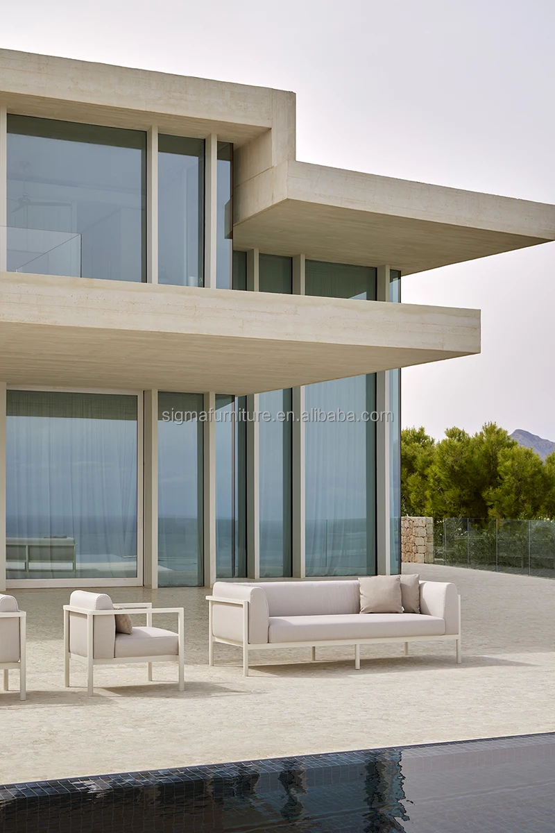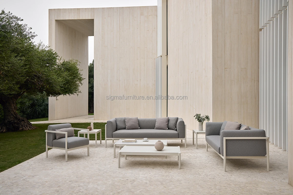 Patio Outdoor Living Room Powder Coated Aluminium Structure Garden Couch 3 Seater Sofa