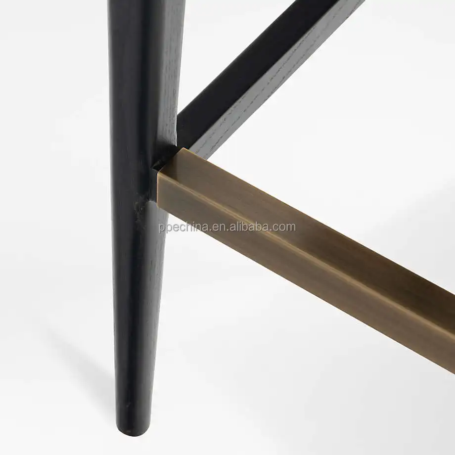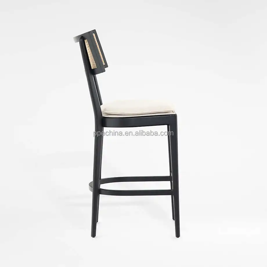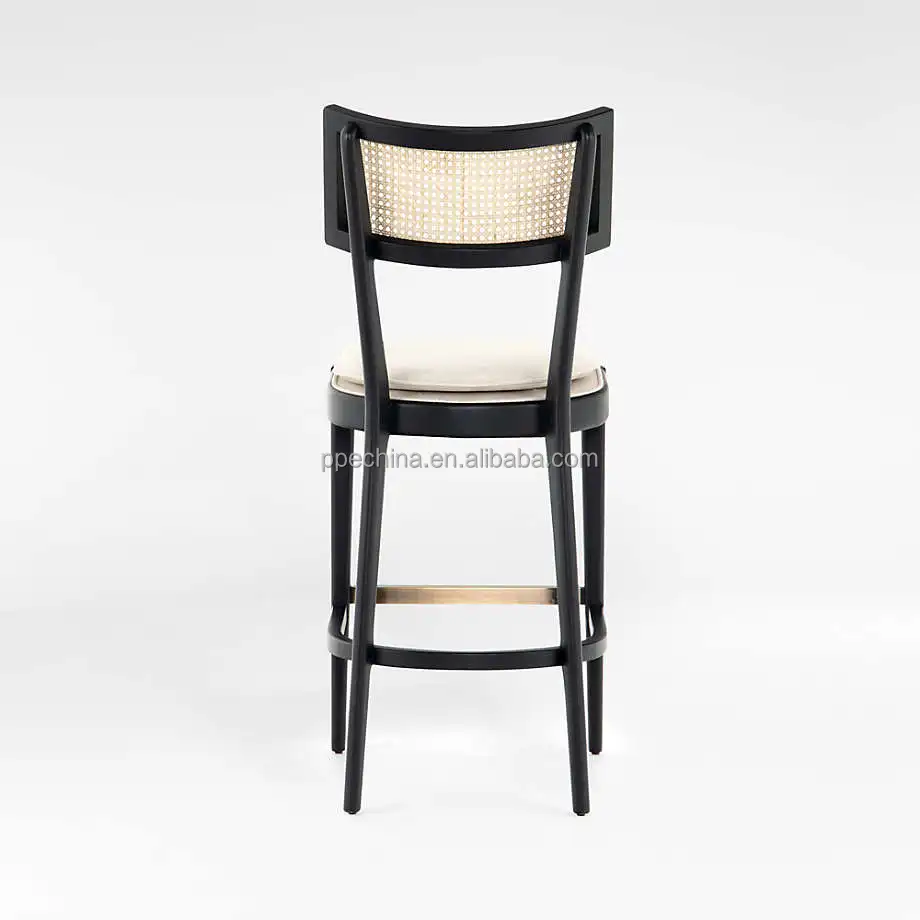 Restaurant chair simple curved hotel home furniture Cheap Black Rattan Cane Counter Bar Stool with metal footrest