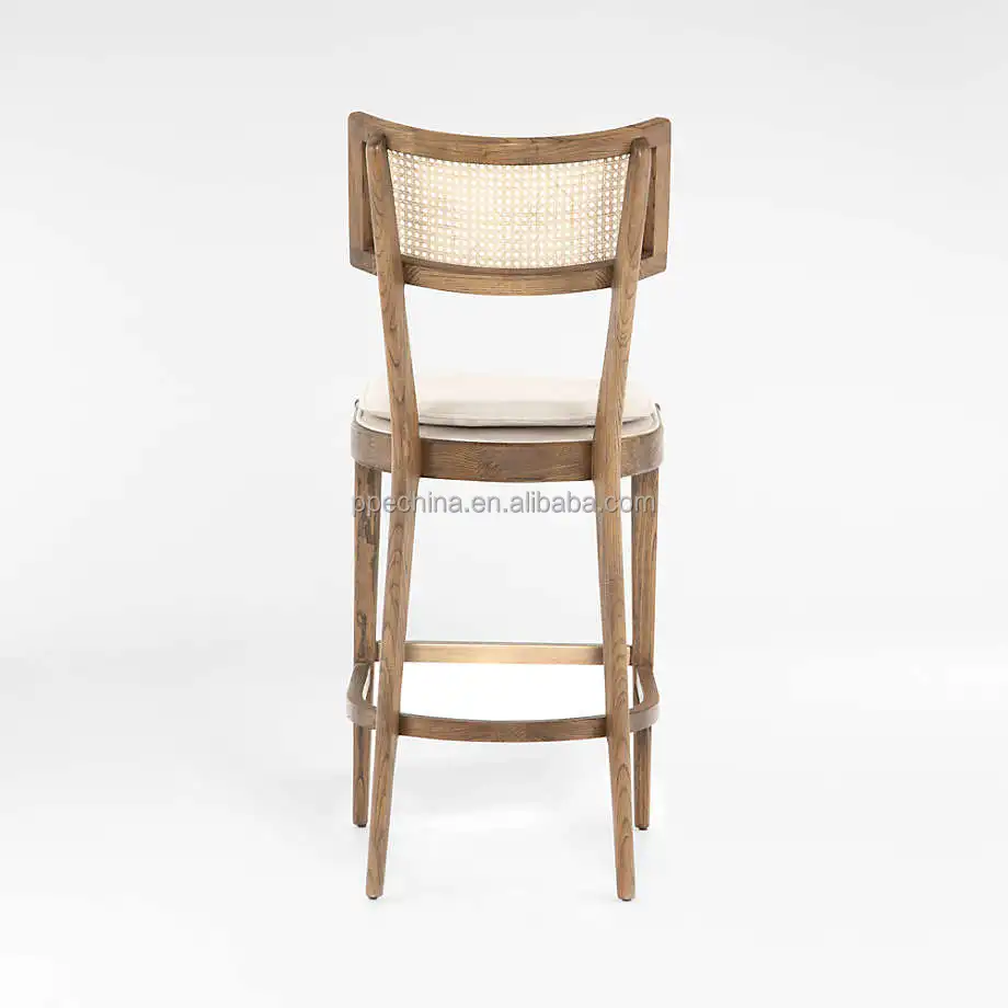 Restaurant dining room chair curved home furniture Cheap Natural Rattan Cane Counter Bar Stools