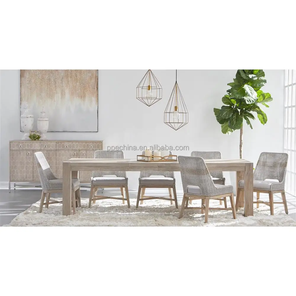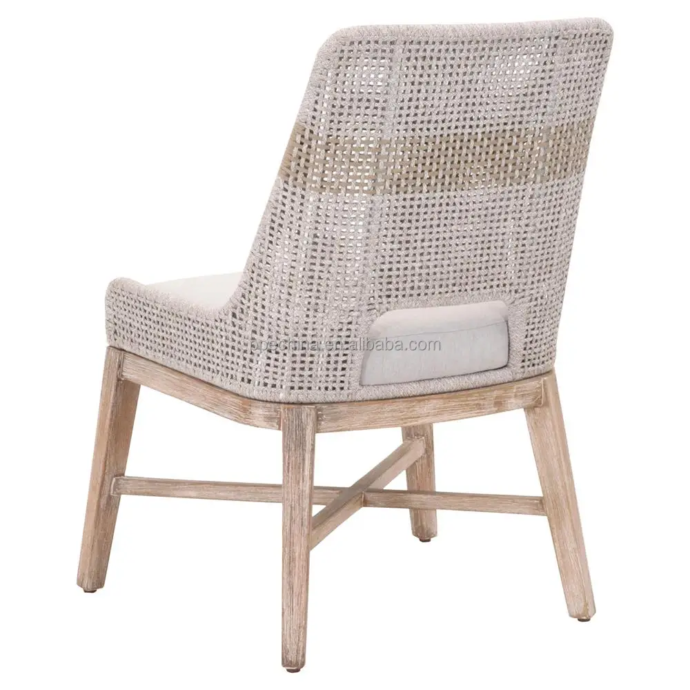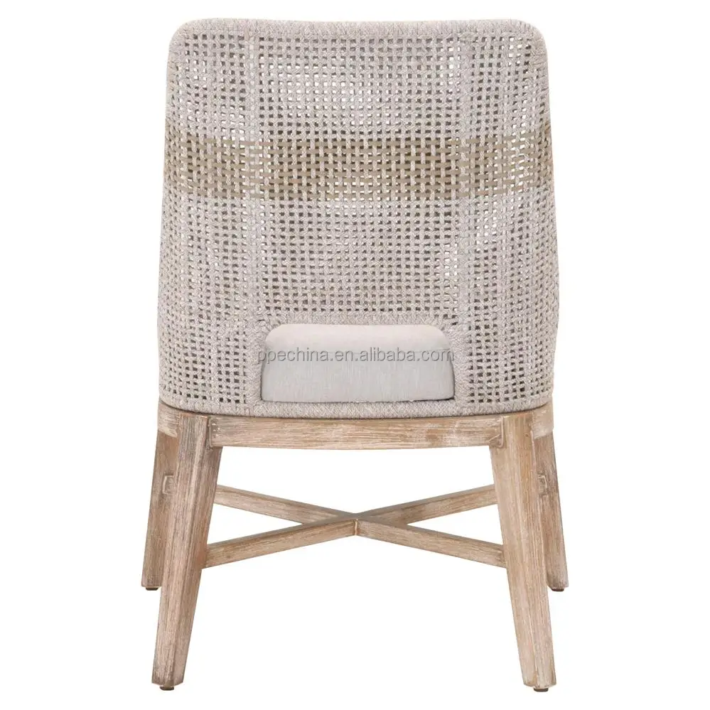 Restaurant home dining room furniture aluminum rope weave solid wood base dining chairs