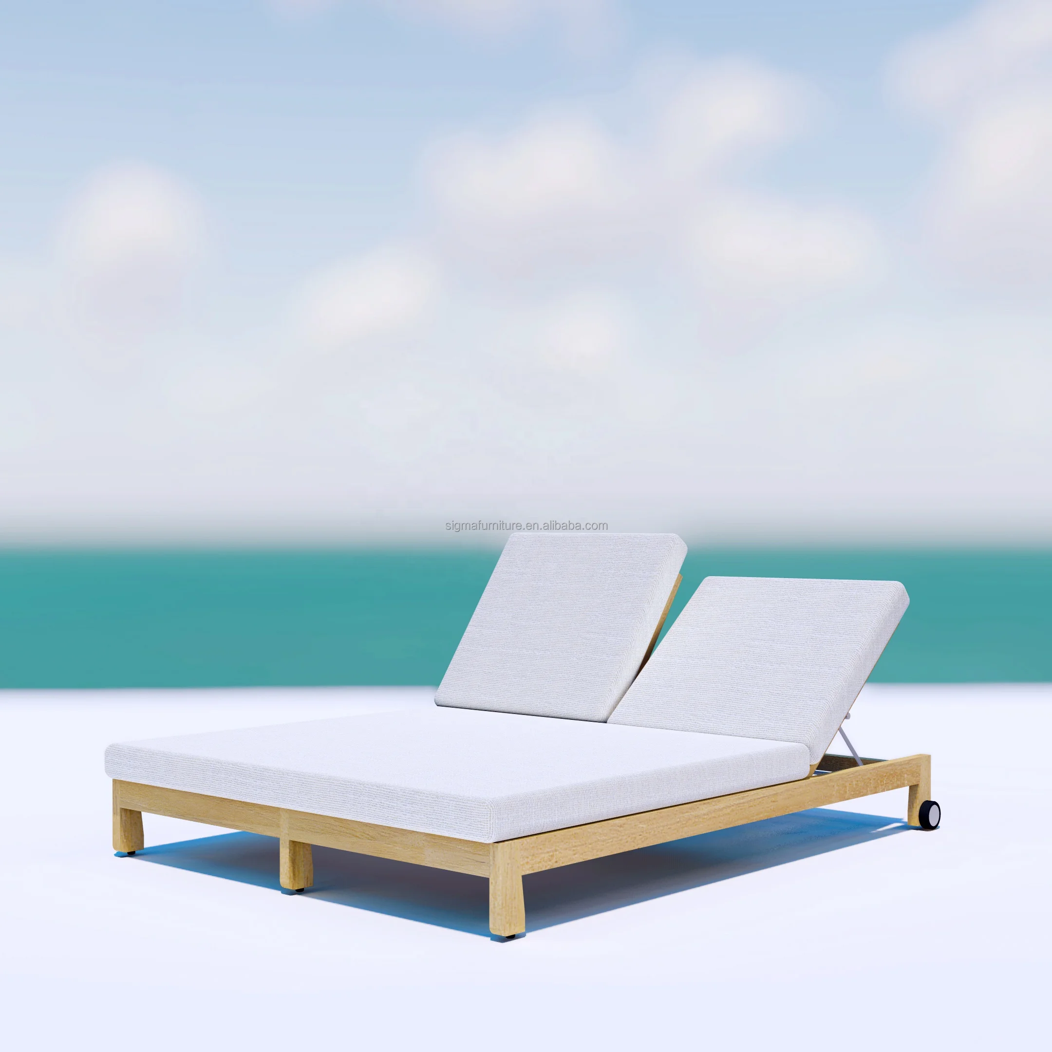 SIGMA New Arrival Furniture Swimming Pool Home Hotel Patio Area Outdoor Leisure Solid Teak Wood Double Chaise Daybed