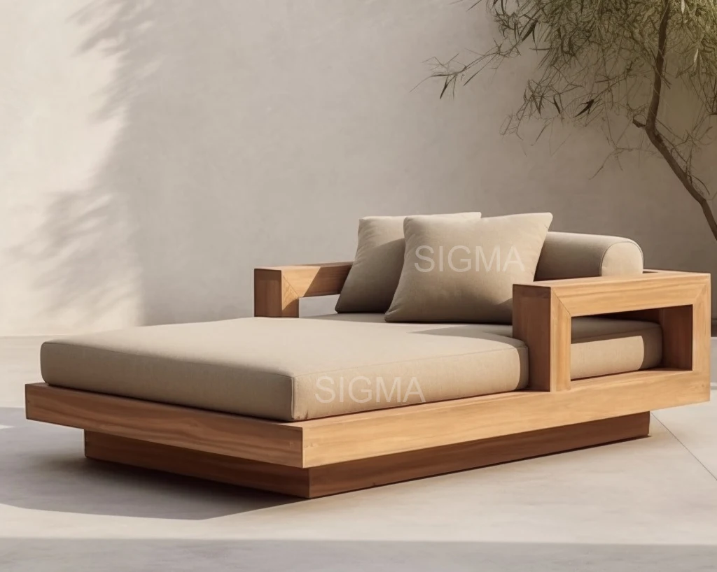 SIGMA Teak Chaise Lounge Waterproof Solid Teak Beach Sun Lounger