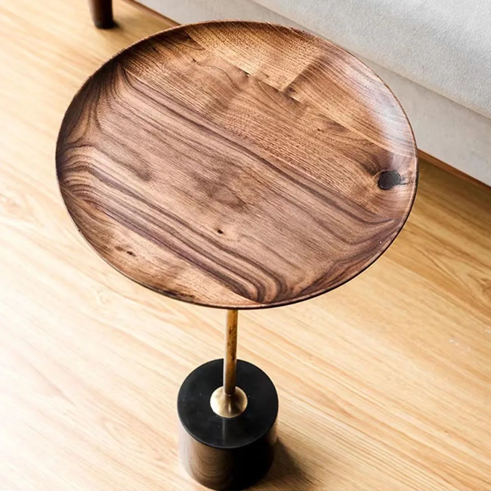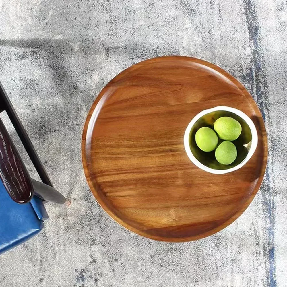 Simple Round Edge Design Carbon Steel lacquered Metal Base wooden Modern coffee table