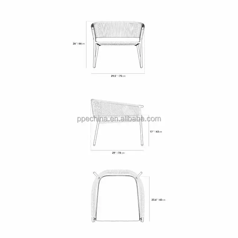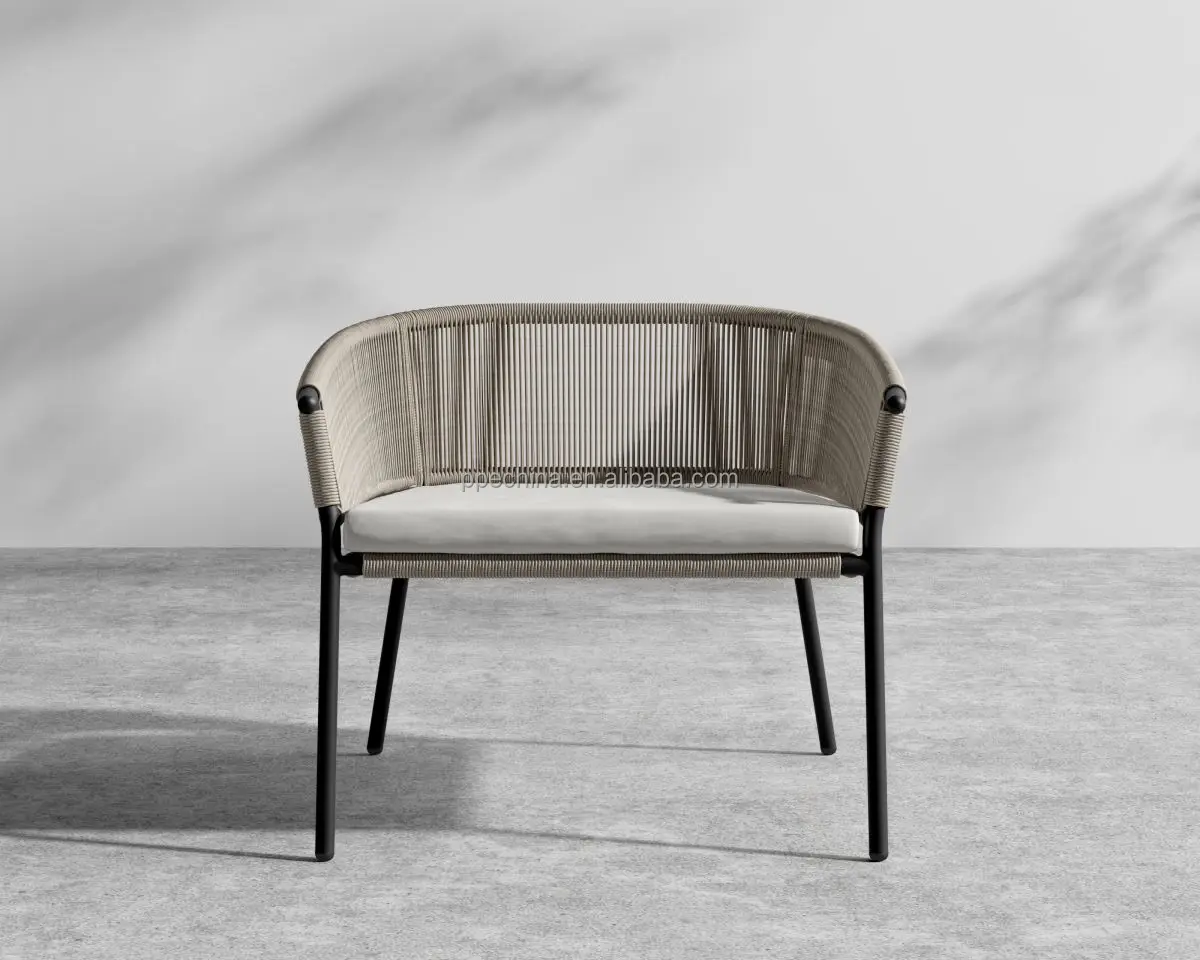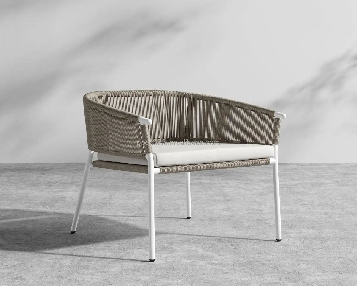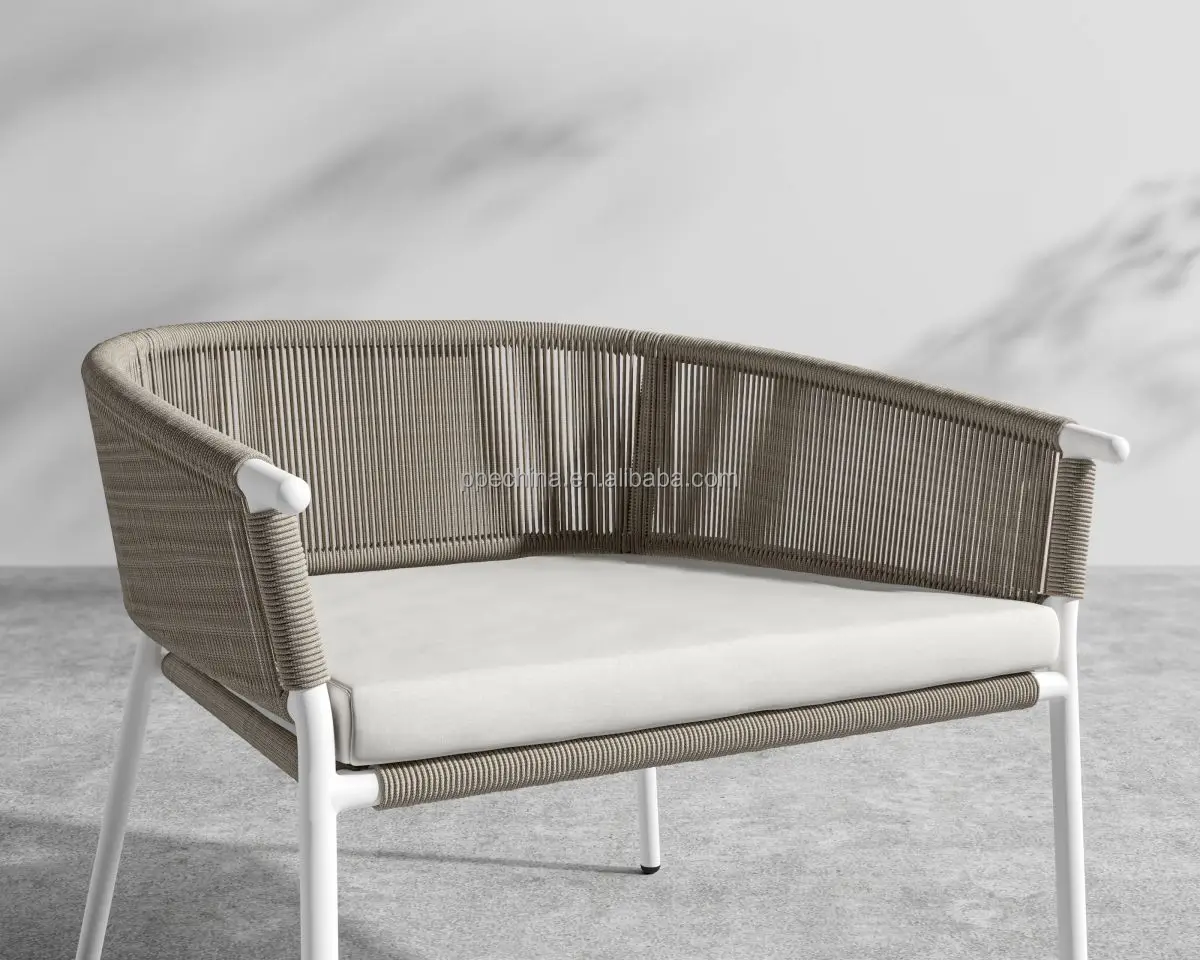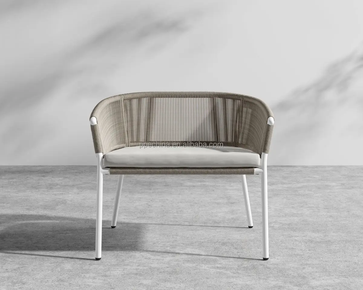 Wholesale Nordic Style Outdoor Leisure Patio Waterproof Garden Dining Room Aluminum Woven Rope Chair