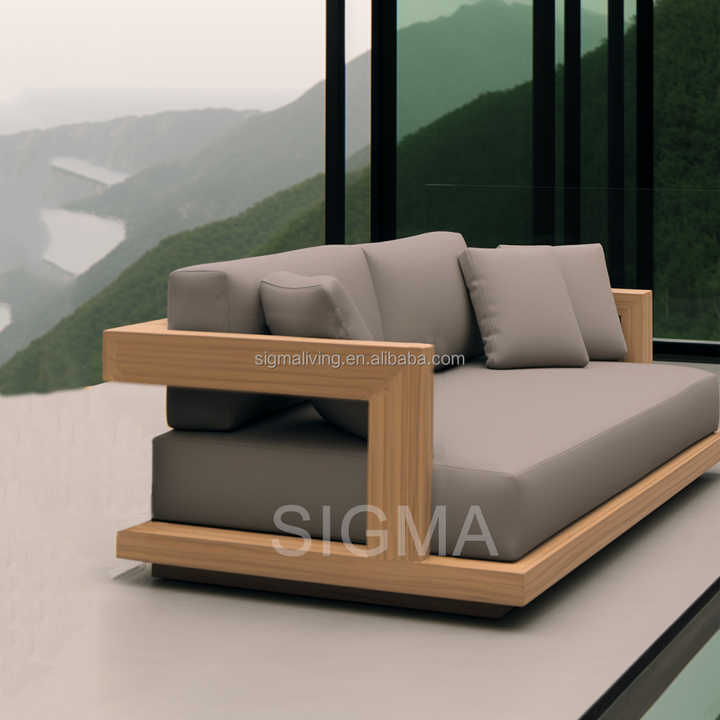 Wholesale Outside Patio Garden Teak Wooden Frame Design Outdoor Set Waterproof Fabric Sofa