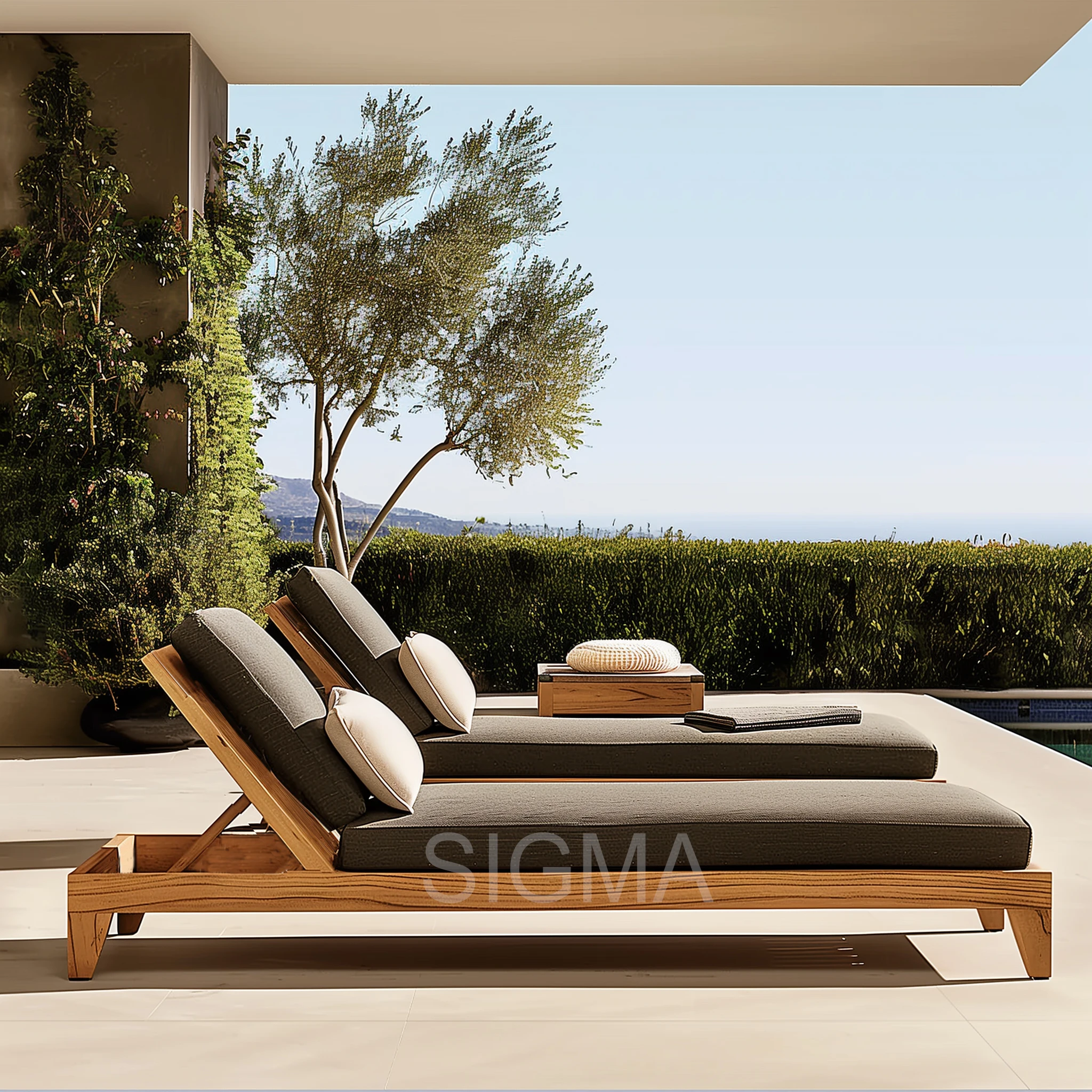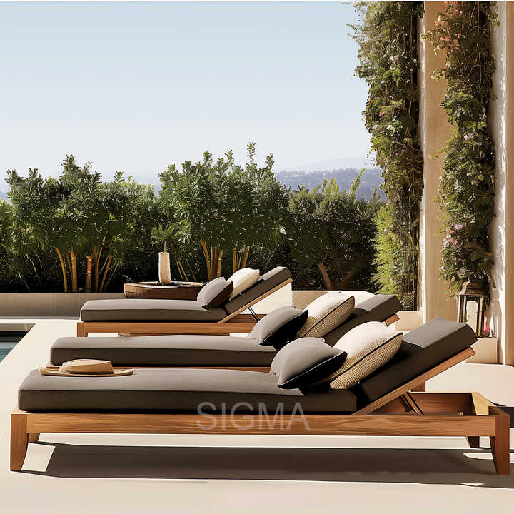 Wholesale Patio Outdoor Wooden Furniture Waterproof Cushion Solid Teak Sunbed Lounger