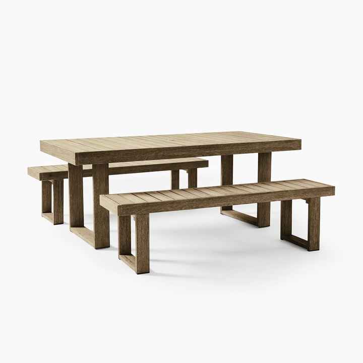 Wholesale Weathered Garden Furniture Teak Dining Table Bench Chairs Set for Patio